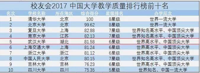 以下是2017中国大学教学质量排行榜具体排名情况,我校名列第5位: