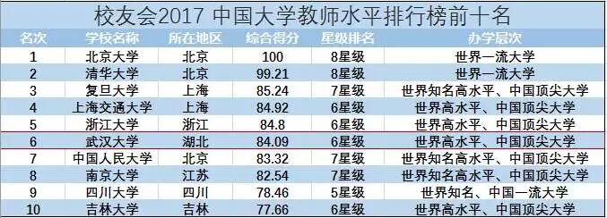 以下是2017中国大学教师水平排行榜具体排名情况,我校名列第6位: