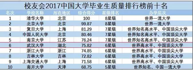 以下是2017中国大学毕业生质量排行榜具体排名情况,我校名列第6位: