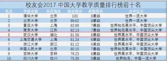 以下是2017中国大学教学质量排行榜具体排名情况,我校名列第5位: